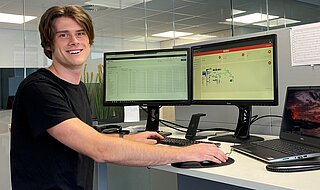 Nach seinem Ausbildungsende übernimmt er nun Aufgaben im Bereich Abteilung MCS, lernt bestehende Softwareumgebungen tiefergehend kennen und macht sich mit den Entwicklungsumgebungen der Steuerungs- und Visualisierungssoftwaren FlowMate und MINDA MoveIT vertraut.