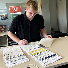 Meine Hauptaufgabe dort ist es, die Eingangsrechnungen zu buchen. Dabei beginne ich täglich damit, die Lieferantenrechnungen alphabetisch zu sortieren. Wichtig ist darauf zu achten, dass keine Gutschrift versehentlich als Rechnung gebucht wird. Im nächsten Schritt werden alle benötigten Informationen händisch auf dem Beleg erfasst, dazu gehört die Kreditorennummer, das Sachkonto, eine Kostenstelle und ein Kostenträger. Nach dem Vorkontieren, auf Grundlage des Standardkontenrahmens (SKR 03), werden die Rechnungen mit unserer internen Belegnummer durchnummeriert und anschließend in unserer Software „Diamant“ gebucht. Beim Buchen werden das Belegdatum, die Rechnungsnummer, alle vorher von uns hinzugefügten Informationen und die Beträge erfasst. Anschließend werden die Buchungen mithilfe eines Auszuges aus dem Journal überprüft. Neben den eben schon angeschnittenen Gutschriften gibt es weitere Herausforderungen in unserer Arbeit. So haben wir hier bei MINDA regelmäßig mit Abschlags- und Schlussrechnungen zu tun. Ein Orga-Projekt zur Digitalisierung des Bestellprozesses und der Rechnungseingangskontrolle ist kurz vor der Umsetzung und wird die Abläufe vereinfachen.