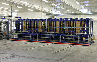 Zur eigentlichen Brettschichtholz-Presse gehören auch die Paketierung und Entleerung – entweder als separates Anlagenteil oder als integraler Bestandteil der Presse. Die Pressen sowie die vor- und nachgelagerten Anlagenteile können flexibel an die gewünschte maximale Produktlänge, -breite und -höhe angepasst werden. Selbstverständlich verfügen unsere automatischen BSH-Pressen über eine permanente Drucküberwachung und -regelung.