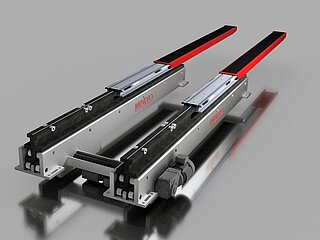 Je nach Anforderung des Projektes setzen wir Regalbediengeräte mit Teleskop- oder Satellitentechnik als Lastaufnahmemittel ein. Diese Wahlmöglichkeit erlaubt das modulare Einlagern großer und kleiner Formate, um die Lagerplatzauslastung optimal zu gestalten. Auch eine Kombination aus beiden Technologien ist umsetzbar. Dabei muss jedoch immer die Abhängigkeit von Stellplatzanzahl zu Leistung betrachtet werden.
