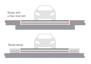 The people-mover conveyors can be fitted at ground-level or raised. Raised systems have ramps and side platforms for optimum accessibility. They can be supplied and assembled with tubs and fully enclosed. The overall height is between 250 and 400 mm.