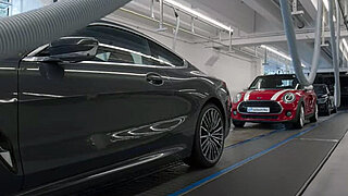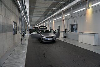 The vehicle passes through various service stations at a belt speed of 2 to 3 metres/min. The practical belt width of up to 4 metres offers cleaning operatives maximum freedom of movement – even when doors are wide open. Studies from the automotive industry show definite ergonomic advantages of this type of vehicle-synchronous conveying. Cleaning operatives can also concentrate much better on the job at hand.