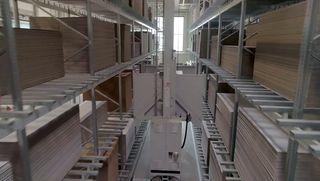 These in-house storages can consist of several aisles. A storage and retrieval machine operates in each aisle; its telescopic forks can work in the rack in both directions. The storage usually takes place by single- or double-deep storage. This means that the block can be reached at any time. Multi-deep storage in the shelves with smaller stack widths is possible.