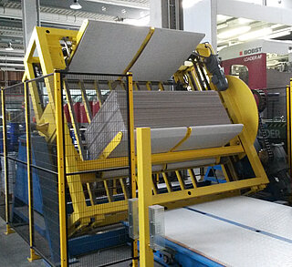 MINDA carries out the feeding of the corrugated board stacks from the corrugator, the intermediate storage or the high-bay warehouse to the converting machines. Other components can make a desired change of direction for the transport. We do not only keep the overview but also the control at any time. MINDA's higher-level control system does not only visualize the actual situation, but also works interactively. The corrugated board stacks are fed order-related. If a processing machine should fail, the control system would automatically return the material if required. Thanks to MINDA an intermediate storage with mixed orders is no longer a problem. Even a direct, fully automatic feeding to the processing machines with the Prefeeder Advector is not a problem. Find out more at Machine periphery.
