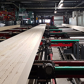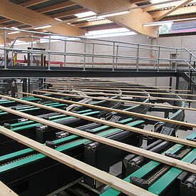 From the pressed blank to the packed, customized produced individual part, from the smallest solid structural timber cross-section to the block-glued XXL glulam beam - with our conveyor technology solutions, we feed and discharge the finishing machines such as