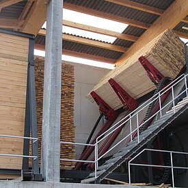 We transport stacks and boards up to a length of 6.30 m just as reliably as lamellas up to a length of 50 m or stacks with a weight up to 17,000 kg.
