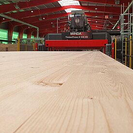 In the finished goods sector, we offer solutions for small, customized components as well as for large-format CLT boards up to a width of 2.60 m or 6 m and a length of 20 m.