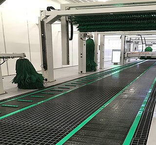 The arguments in favour of the solution, combined with the systems that had already gained a good track record in the automotive industry, quickly persuaded Jobst Münter to pick a dual track conveyor with chains of plastic modules. In the end, he ordered a conveyor 42 metres in length and was delighted to be able to rely on the trust placed in MINDA from the outset. From the initial, detailed planning phase, involving liaison with the customer and car wash technology supplier, to the design and implementation of special customer requirements, the system was installed and commissioned on schedule. Jobst Münter comments that the concept of the dual track conveyor is very popular with customers who previously felt nervous about using a car wash or whose cars come with complex driver assistance systems and, of course, word quickly gets around about how good the system is.