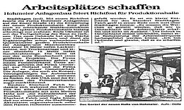 The "Schaumburger Nachrichten", a local newspaper, report on the roofing ceremony.